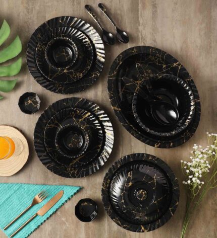 Antique 46 Pcs Black & Gold Melamine Dinnerware Set
