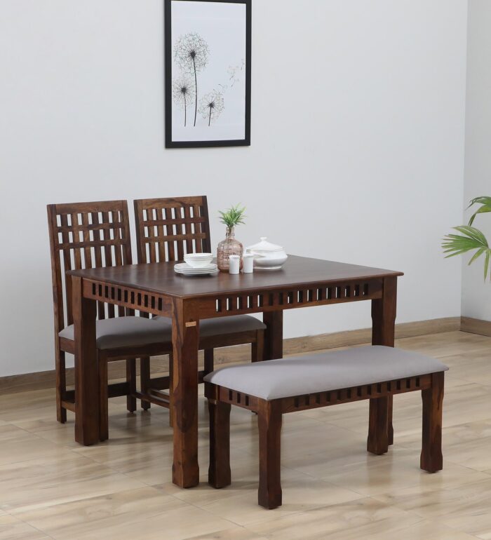 Drusilla Sheesham Wood 4 Seater Dining Set In Scratch Resistant