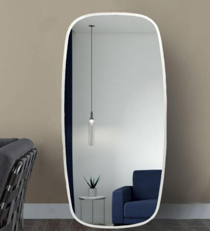 Pearl White Mild Steel Ohana Oval Floor Mirror,