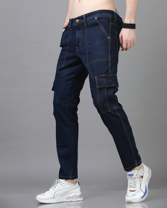 Men’s Mid Blue Slim Fit Cargo Jeans