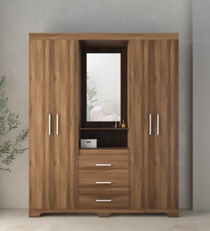 Shion 4 Door Wardrobe in Walnut Bronze Finish with Mirror