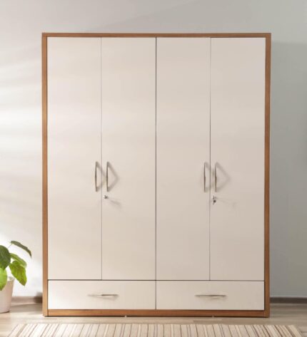 Nicole 4 Door Wardrobe In Natural Teak Finish